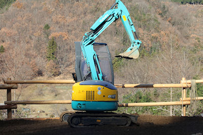 | 12月23日(水)、会場内の遊歩道にチップ材を運び、着々とオープン準備が進んでいますが、気温が下がらず凍らない状態が続いています。 |