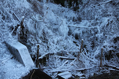 風が強く氷の重みに耐えきれず数本立木が折れました。 |
