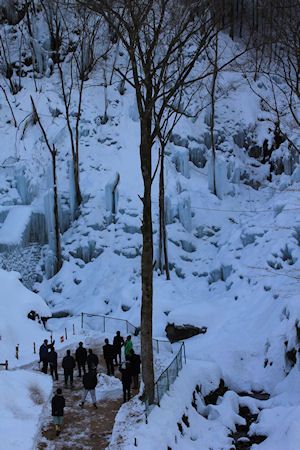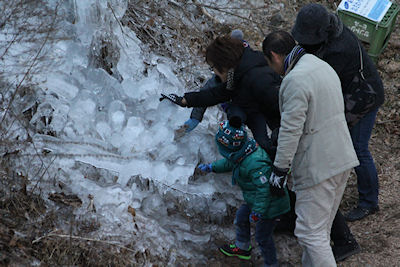 結氷も進み一段と厚く大きく生長してきました。報道関係の取材もあり、日増しに見学者も増えてきています。 |