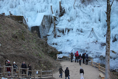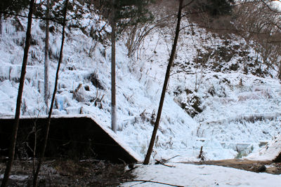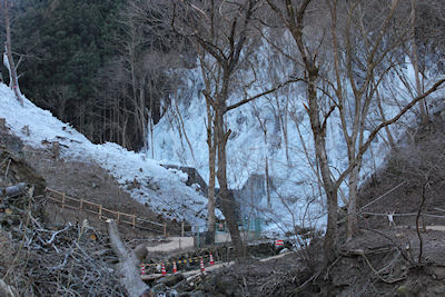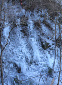 | 滝の左岸も凍り |