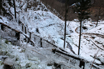 | 堰堤上部のつらら |